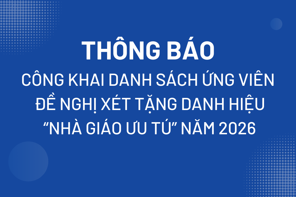 Trường Đại học Tôn Đức Thắng thông báo về việc công khai danh sách ứng viên đề nghị xét tặng danh hiệu "Nhà giáo ưu tú" năm 2026