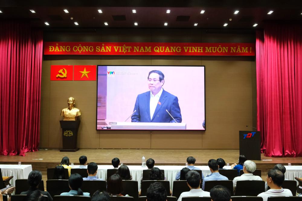 Đảng ủy Trường Đại học Tôn Đức Thắng tổ chức điểm cầu trực tuyến tham dự Hội nghị toàn quốc quán triệt, triển khai thực hiện Nghị quyết số 66-NQ/TW và Nghị quyết số 68-NQ/TW của Bộ Chính trị