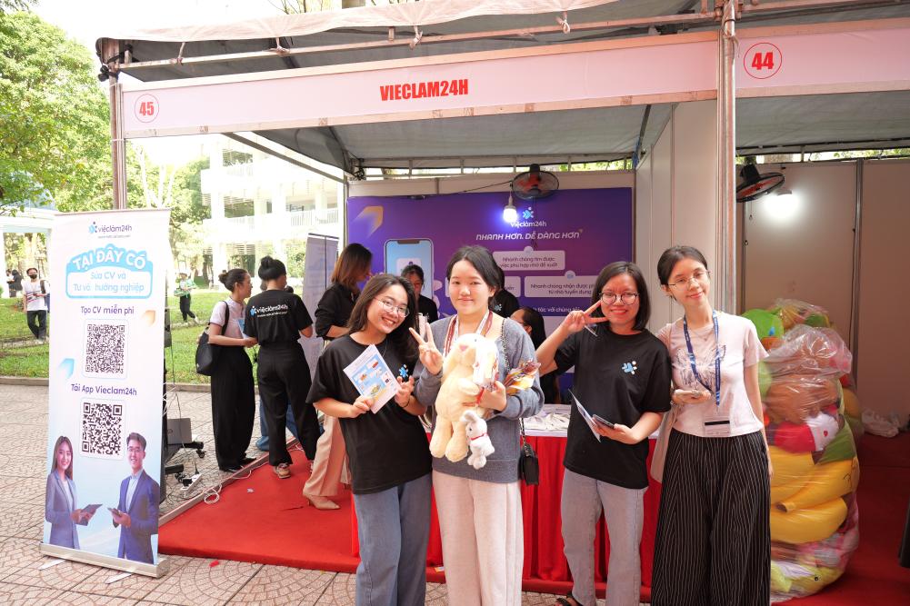 Đông đảo sinh viên tham quan các gian hàng tuyển dụng để tìm hiểu cơ hội thực tập và việc làm