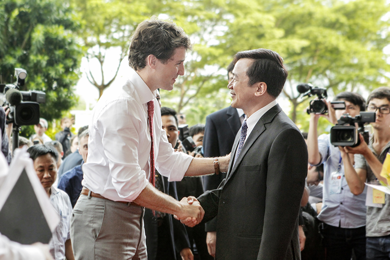 Nhân chuyến tham dự Tuần lễ cấp cao Diễn đàn hợp tác kinh tế Châu Á - Thái Bình Dương (APEC 2017) tổ chức tại Đà Nẵng, Thủ tướng Cộng hòa Canada, Justin Trudeau đã có chuyến thăm chính thức Việt Nam; sau đó, Ngài vào Thành phố Hồ Chí Minh, đến thăm Đại học Tôn Đức Thắng (TDTU) nói chuyện cùng giảng viên, sinh viên vào chiều ngày 09/11/2017.