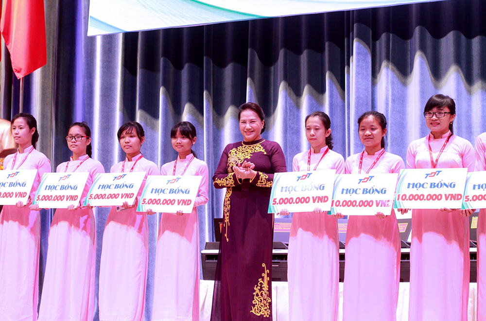 Áo dài từ lâu vốn được xem là hình ảnh thanh nhã đặc trưng của phụ nữ Việt Nam. Áo dài hồng cánh sen của nữ sinh TDTU còn là sự kết hợp tuyệt diệu giữa sự thanh nhã của kiểu dáng áo với màu sắc của Quốc hoa. Đặc biệt, trong các sự kiện quốc tế diễn ra tại TDTU, tà áo hồng lại càng nổi bật hơn bao giờ hết trong mắt quí khách từ khắp nơi trên thế giới. Có thể nói ít có cơ hội nào mà việc quảng bá sự duyên dáng và trẻ trung đặc thù của phụ nữ Việt Nam đến với bạn bè nước ngoài lại được thể hiện tốt và thành công như vậy.