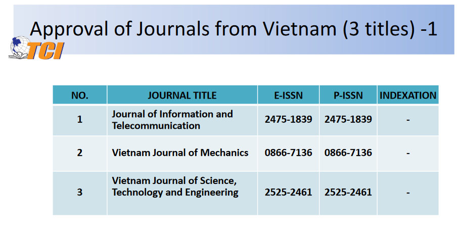 Được đưa vào Cơ sở dữ liệu ACI chỉ sau 20 tháng ra đời, mục tiêu được liệt kê vào các Hệ thống trích dẫn ISI, Scopus sau 03 đến 05 năm của JIT là hoàn toàn khả thi.