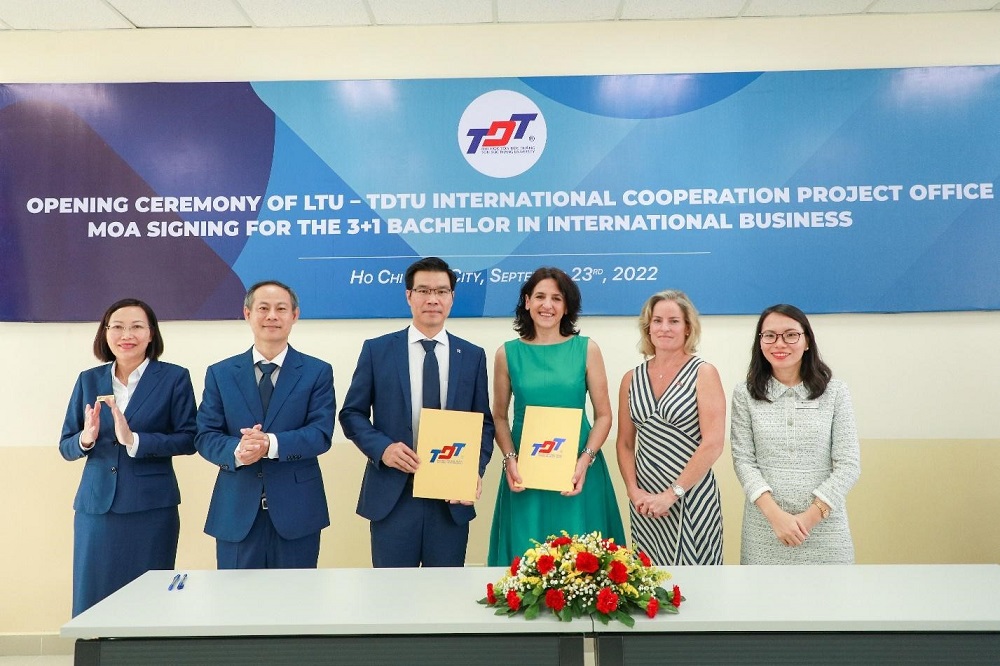Ngày 23/9/2022, một chương trình liên kết mới cho ngành Kinh doanh quốc tế giữa TDTU và Đại học La Trobe (Úc) đã được ký kết. Đây là chương trình liên kết theo hình thức song bằng (3 + 1), sinh viên sẽ học tập tại TDTU trong 03 năm sau đó chuyển tiếp học tại LTU trong 01 năm, để lấy bằng cử nhân Quản trị kinh doanh của cả hai trường.