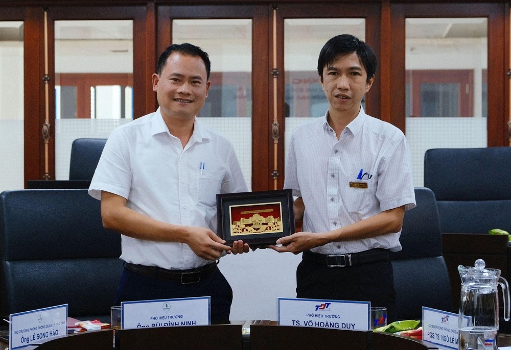 Về phía TDTU, TS. Võ Hoàng Duy - Phó hiệu trưởng cùng đại diện lãnh đạo các Phòng, Ban, Khoa TDTU đã tiếp đón và làm việc cùng với Đoàn.