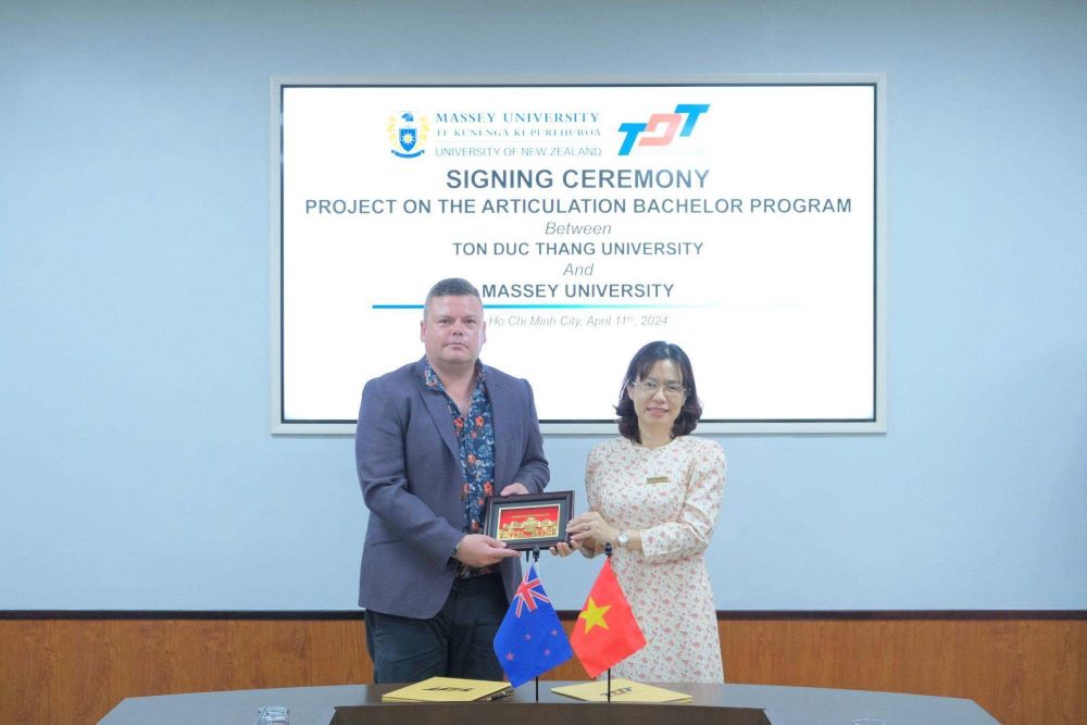 Ngày 11/4/2024, đại diện Trường Đại học Massey, New Zealand do GS. Jonathan Elms - Phó Hiệu trưởng Trường Đại học Massey, Giám đốc Trường Kinh doanh Massey cùng TS. Jeffrey Stangl - Trưởng phòng Hợp tác quốc tế Trường Đại học Massey đã đến thăm và làm việc tại Trường Đại học Tôn Đức Thắng (TDTU).