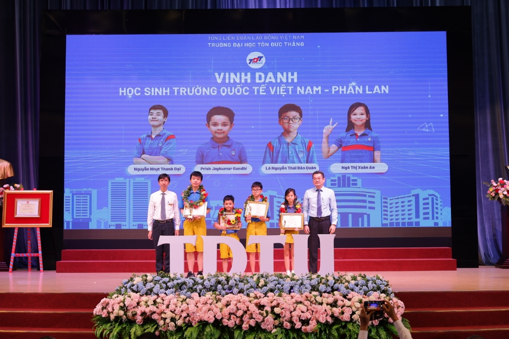 Tại buổi lễ, Nhà trường cũng khen thưởng cho các sinh viên tiêu biểu có thành tích xuất sắc trong các lĩnh vực: Học tập - Rèn luyện, Thể thao, Nghiên cứu khoa học, Văn hóa - Văn nghệ; trao học bổng cho tân sinh viên là thủ khoa Khóa 28, sinh viên có điểm tiếng Anh đầu vào đạt 8.0 theo chuẩn IELTS, vinh danh học sinh Trường Quốc tế Việt Nam - Phần Lan (VFIS) thuộc TDTU có thành tích học tập và các hoạt động ngoại khóa trong và ngoài nước.