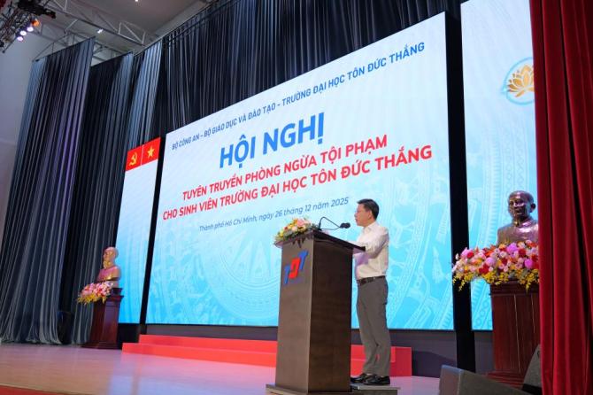 Tin tức Viết về TDTU | 01/01/2026 Trường Đại học Tôn Đức Thắng năm 2025: những cột mốc đáng nhớ Hoạt động chung | 01/01/2026 Kỳ họp lần thứ 26 và Hội nghị tổng kết hoạt động của Hội đồng trường Trường Đại học Tôn Đức Thắng Sinh viên | 26/12/2025 Trường Đại học Tôn Đức Thắng phối hợp tổ chức Hội nghị tuyên truyền phòng ngừa tội phạm cho sinh viên Tin theo thể loại Hoạt động chung TDTU | 01/01/26 Kỳ họp lần thứ 26 và Hội nghị tổng kết hoạt động của Hội đồng trường Trường Đại học Tôn Đức Thắng TDTU | 26/12/25 Trường Đại học Tôn Đức Thắng tổ chức Hội nghị giao ban toàn Trường lần 1 - năm học 2025-2026 Xem thêm Tin trên báo TDTU | 08/12/25 Báo Nhân Dân: Đội SKY VISION - Trường đại học Tôn Đức Thắng giành giải Nhất Cuộc thi Sáng tạo UAV 2025 Xem thêm Thông báo TDTU | 27/12/25 Thư mời báo giá Trang bị bàn ghế nội thất và thiết bị cho Phòng làm việc các Tạp chí khoa học quốc tế Xem thêm Giáo dục TDTU | 10/12/25 Khai mạc đợt đánh giá ngoài 04 chương trình đào tạo theo chuẩn AUN-QA lần thứ 487 tại Trường Đại học Tôn Đức Thắng TDTU | 24/10/25 Lễ Trao bằng tốt nghiệp Trường Đại học Tôn Đức Thắng, đợt tháng 10.2025: Hơn 3.600 tân khoa bước vào hành trình tri thức mới Xem thêm Khoa học - công nghệ TDTU | 30/10/25 Giảng viên và sinh viên TDTU được vinh danh tại Giải thưởng Quả Cầu Vàng & Nữ sinh Khoa học – Công nghệ Việt Nam 2025 TDTU | 05/08/25 Trường Đại học Tôn Đức Thắng thành lập Trung tâm Đổi mới sáng tạo và Chuyển giao Khoa học công nghệ Xem thêm Quốc tế hóa TDTU | 11/12/25 Trường Đại học Tôn Đức Thắng tổ chức Hội thảo Quốc tế Các giải pháp công nghệ tiên tiến – Lý thuyết và Ứng dụng lần thứ 10 TDTU | 28/11/25 Trường Đại học Tôn Đức Thắng tổ chức Hội thảo quốc tế về Công nghệ Môi trường và Những phát kiến – ICETI 2025 Xem thêm Phát triển bền vững TDTU | 11/11/25 Trường Đại học Tôn Đức Thắng đạt giải Phát triển tài năng tại ASOCIO 2025 TDTU | 27/04/25 Trường Đại học Tôn Đức Thắng vinh dự được vinh danh là một trong 50 công trình xây dựng tiêu biểu của Thành phố Hồ Chí Minh Xem thêm Quan hệ cộng đồng TDTU | 05/12/25 Trường Đại học Tôn Đức Thắng tổ chức Ngày hội tuyển dụng và kết nối doanh nghiệp lần 2 năm 2025 TDTU | 20/11/25 Tổng Liên đoàn Lao động Việt Nam tặng hoa chúc mừng Trường Đại học Tôn Đức Thắng nhân Ngày Nhà giáo Việt Nam Xem thêm Diễn giả công chúng TDTU | 04/07/25 Chương trình Diễn giả công chúng: "Nghiên cứu về quản trị công ty và phát triển bền vững tại các nền kinh tế mới nổi, những khuyến nghị cho Việt Nam" TDTU | 17/01/25 Chương trình Diễn giả công chúng tháng 01/2025: "Chiến lược nhân tài ngành bán dẫn Đài Loan" Xem thêm Viết về TDTU TDTU | 01/01/26 Trường Đại học Tôn Đức Thắng năm 2025: những cột mốc đáng nhớ Xem thêm Đoàn thể TDTU | 24/12/25 Hội nghị Ban Chấp hành mở rộng Công đoàn Trường Đại học Tôn Đức Thắng nhiệm kỳ 2025-2030 Xem thêm Sinh viên TDTU | 26/12/25 Trường Đại học Tôn Đức Thắng phối hợp tổ chức Hội nghị tuyên truyền phòng ngừa tội phạm cho sinh viên Xem thêm